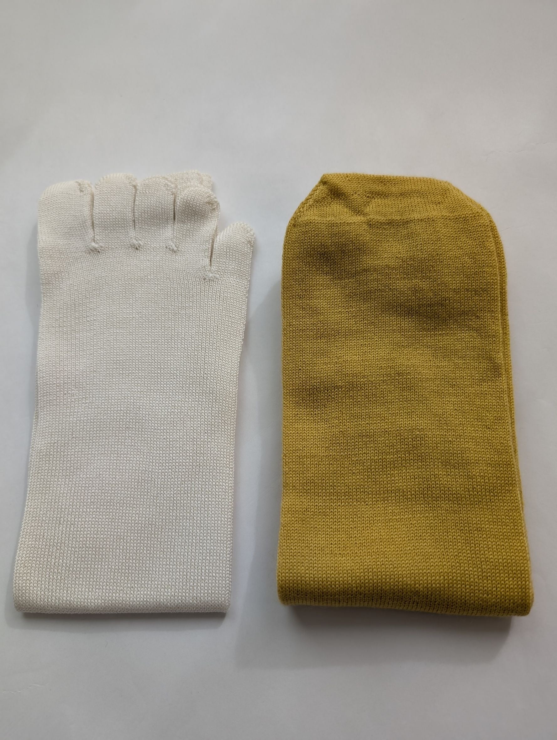 重ね履きの1枚目に履くシルク5本指靴下の単品です。